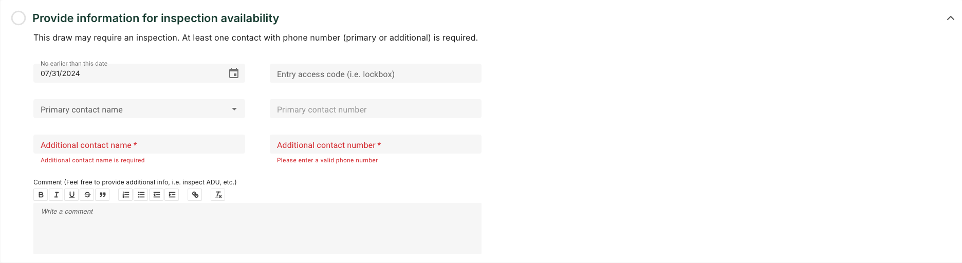 Days and times you be available for the inspection - as well as any critical details for the inspector such as Lockbox Codes